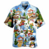 Buy now “Christmas Jumping On Musical Instrument In Blue Hawaiian Shirt” today from our store.