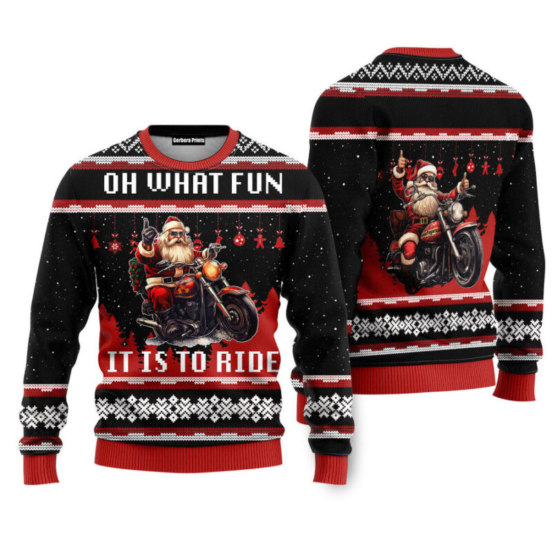 Oh What Fun It Is To Ride Santa Drive Motorbike Christmas Sweater