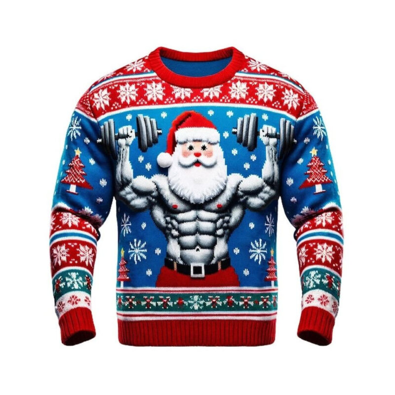 Muscular Santa Claus Gym Lifting Ugly Christmas Sweater